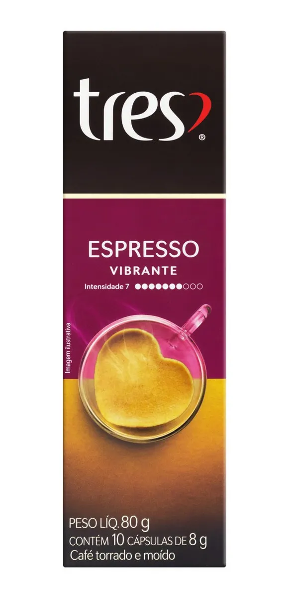 Cápsula de Café Espresso Vibrante TRES 3 Corações 10 Unidades